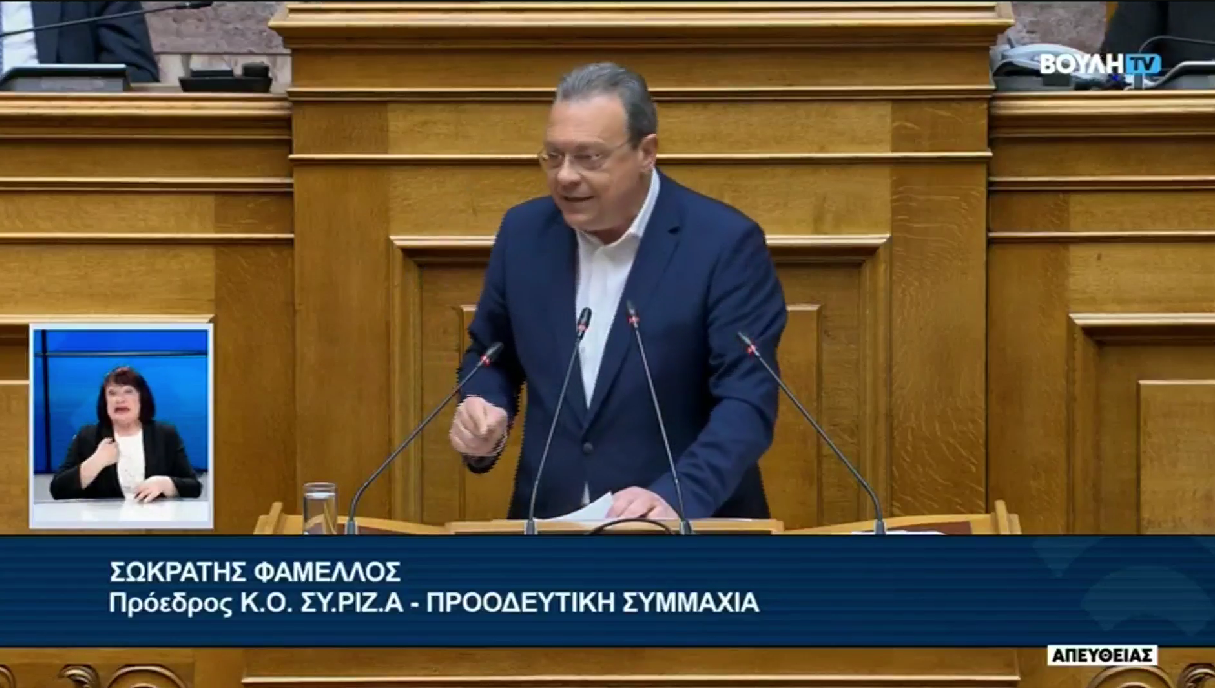 Δευτερολογία του προέδρου του ΣΥΡΙΖΑ-ΠΣ, Σωκράτη Φάμελλου, στην Ολομέλεια της Βουλής