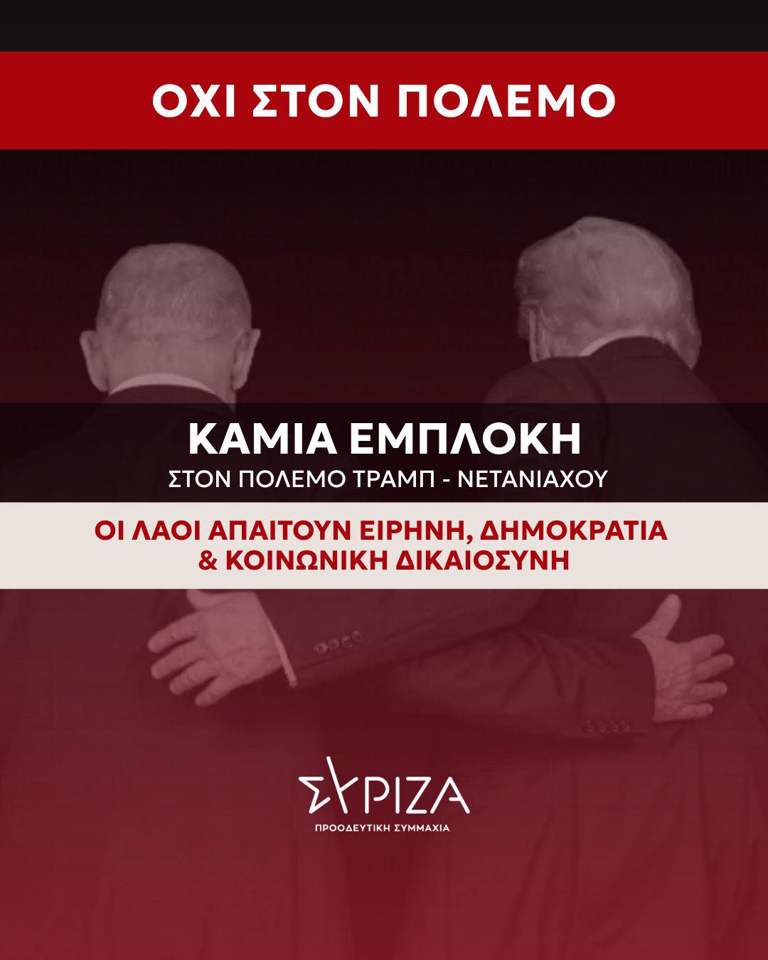 Με βάση την απόφαση της Πολιτικής Γραμματείας, ο ΣΥΡΙΖΑ-ΠΣ ξεκινά πανελλαδική καμπάνια για την Ειρήνη και κατά του πολέμου.