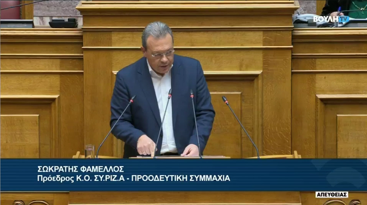 Ομιλία του Προέδρου του ΣΥΡΙΖΑ-ΠΣ, Σωκράτη Φάμελλου, στην Ολομέλεια της Βουλής