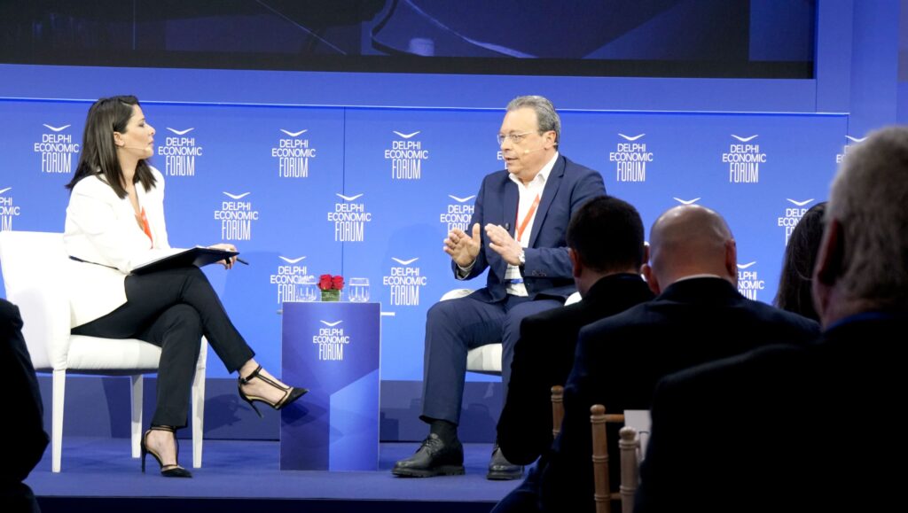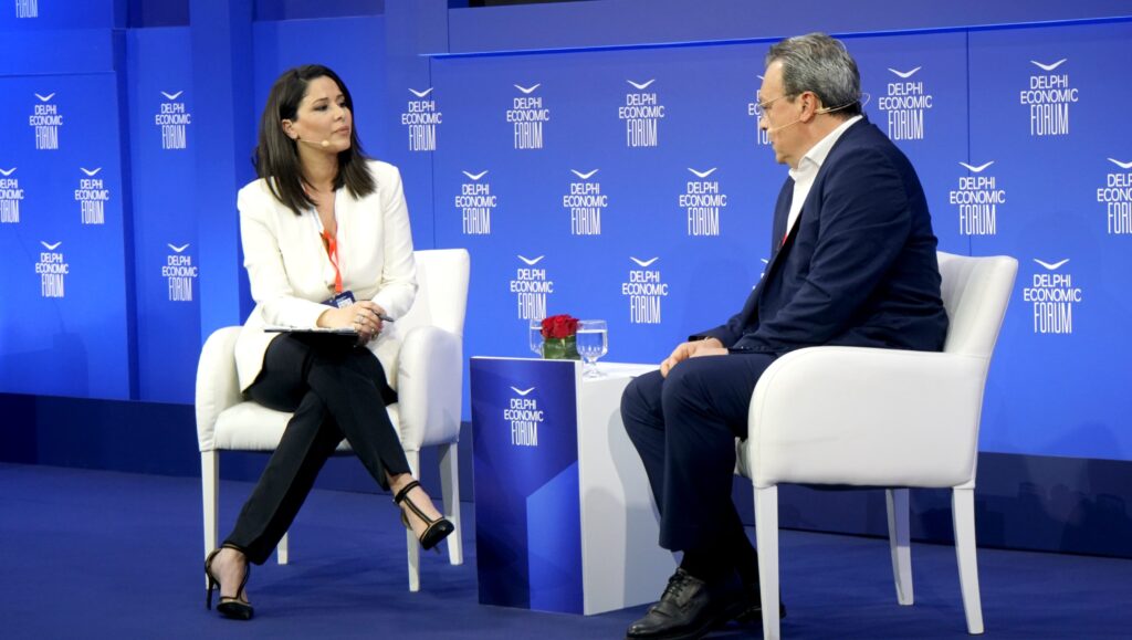 Συνέντευξη του προέδρου του ΣΥΡΙΖΑ-ΠΣ, Σωκράτη Φάμελλου, στο Οικονομικό Φόρουμ των Δελφών και στη δημοσιογράφο Στέλλα Στυλιανού